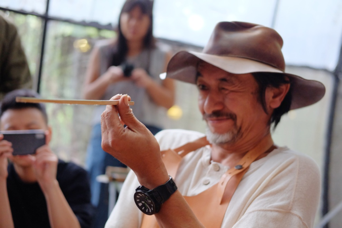 長野先生在示範如何削筷子尖端的時候,說到如果能把筷子好好削尖,當你用它把食物送進你嘴裡後,它可以很容易離開食物,而這樣你就不容易感覺到筷子的存在,而更能感受到食物的美味,沒想到只是小小的筷子,也有這麼大的學問在呢!