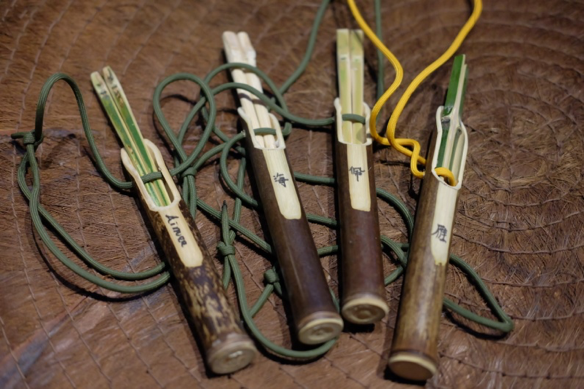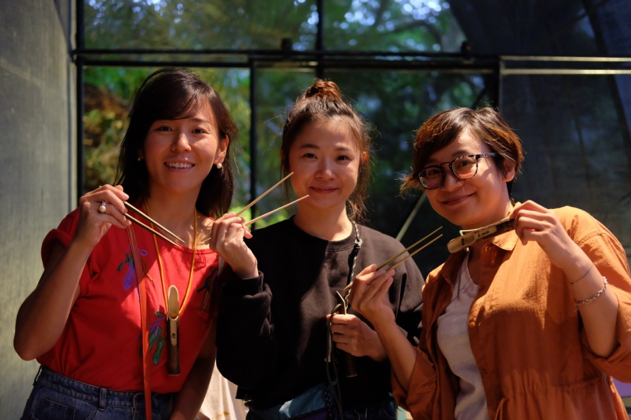 在這兩個小時的手作過程中,長野先生不時的提供給大家協助,每個人都很順利的完成自己的竹筷。他還準備了繩子、黑竹做的竹筒,讓大家可以收納,隨時都可以把竹筷掛在身上,他笑說:「每次只要他把竹筷掛在脖子上時,大家就知道他肚子餓了,就會拿食物餵食他。」