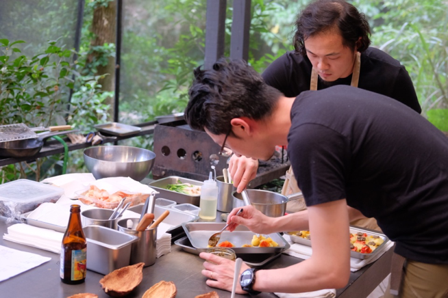 完成筷子之後,大夥兒移動到用餐區,準備享用好福食研團隊與長野先生合作的山野餐點。為了這場餐會,Wes和長野先生都花費了非常多心思與時間在籌備。