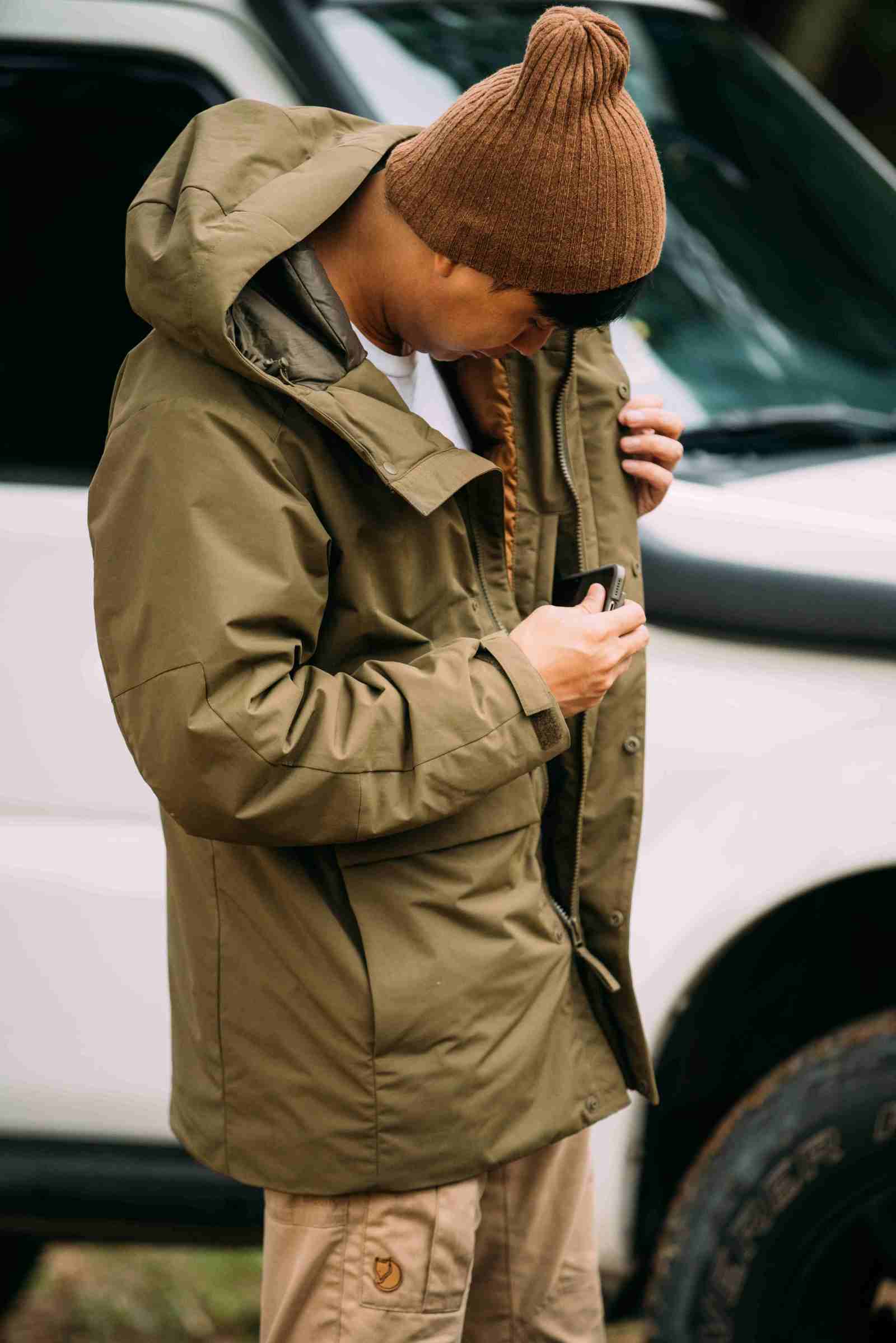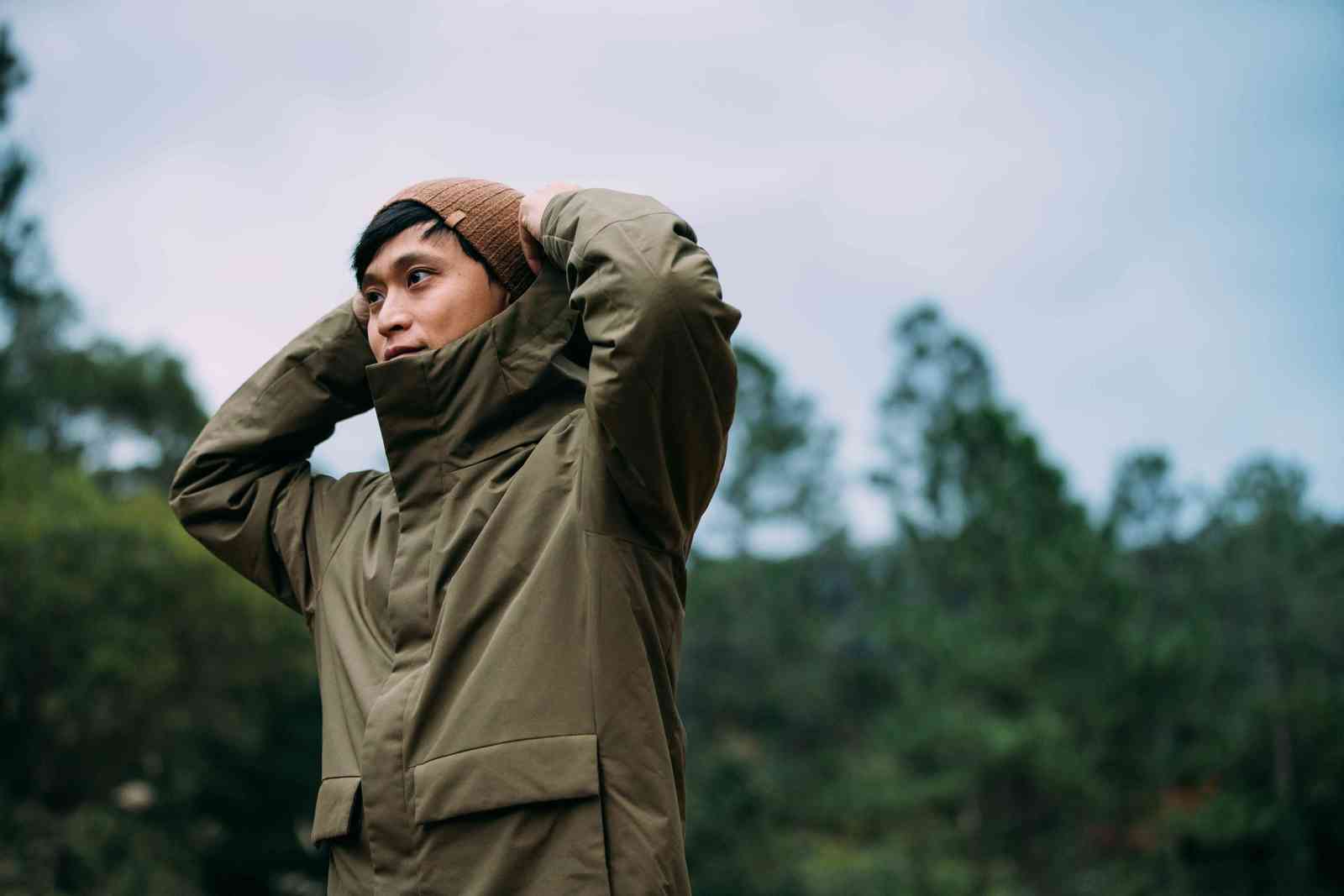 上午與編輯討論完內容與開完例行會議,最近被”一個人吃飽就睡”(順便強推這部日劇)燒到,愛上 Solo Camp,下午驅車直奔進郊區,以這樣類型的戶外強度 Hybrid Down 基本在機能上沒有太大的問題。輕鬆的轉換,不用擔心衣著的感覺也實在是滿棒的。在野外套上了毛帽,戶外風格與機能就又再上升到另一個層次。