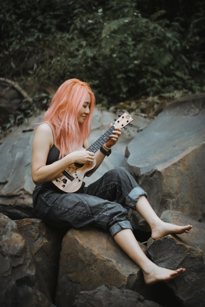 「我以前是樂團的 Bass 手,兼主唱。2012 年時,我一個好朋友開了一間賣烏克麗麗的店,邀請我去玩。我玩了一會兒,發現烏克麗麗滿容易的,而且很輕巧,很好上手。比起我一直學不會的吉他,烏克麗麗根本簡單好幾倍。」手裡拿著烏克麗麗,她一邊摸著琴身,一邊說。