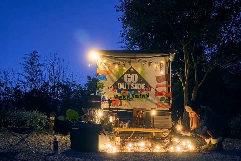 近幾年迷上野營的她,開車去露營時,也會將烏克麗麗帶著。但她笑著強調:「我不是刻意帶的,而是烏克麗麗就放在車上,所以我到哪,它就跟著我到哪。」