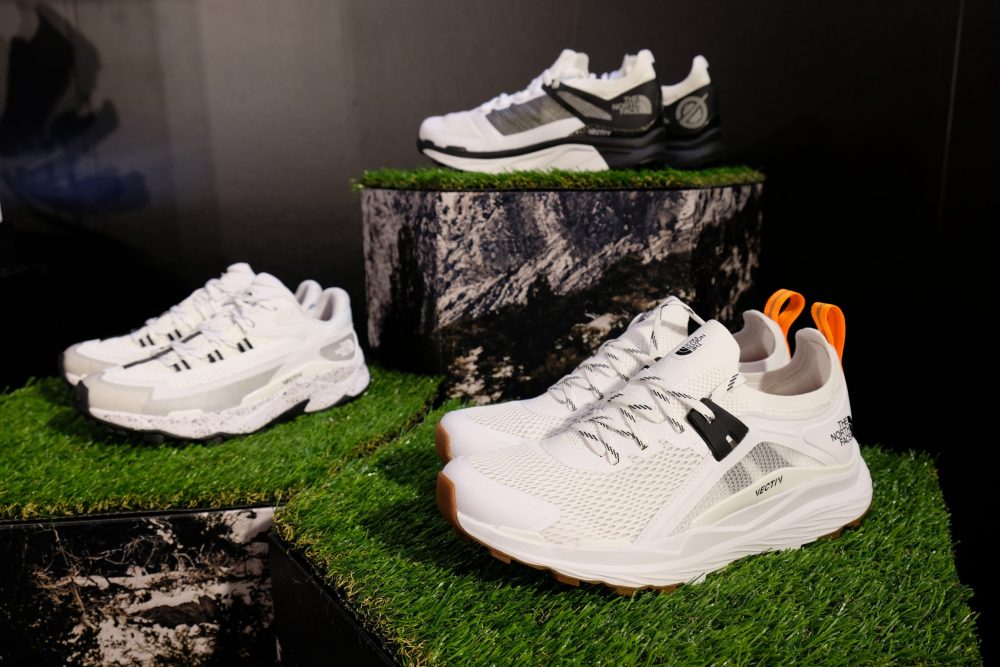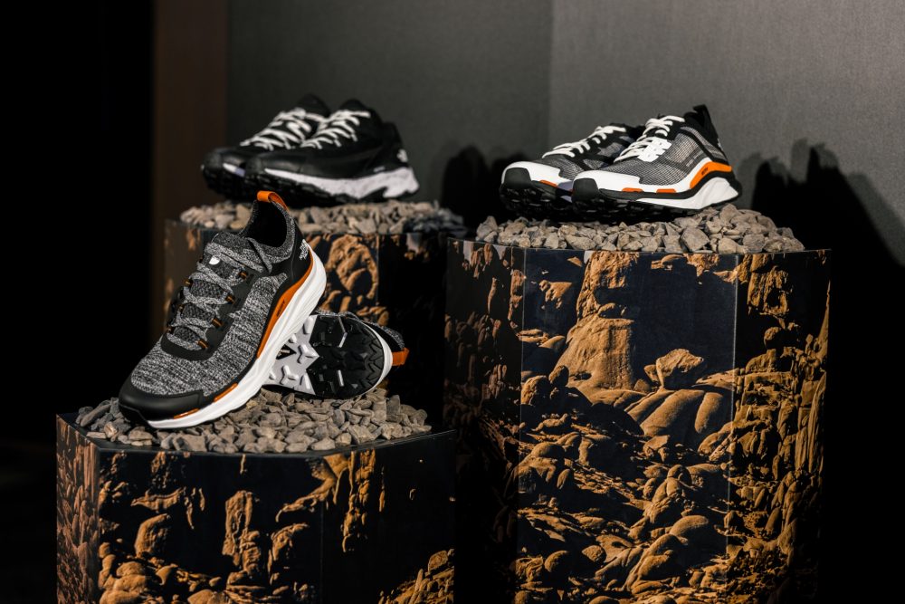 ▲現場展示的 Trail Run 越野跑系列以及 Light Hike 輕量徒步系列。
