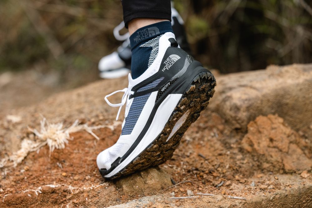 聽完這些越野跑者的經驗分享,還是對 VECTIV 一知半解對吧?簡單來說,VECTIV 技術是一種針對山地環境中的越野跑和徒步運動所研發的鞋底結構,位於超輕薄、舒適且具有保護性的網布鞋面之下。在過去碳纖維承托板技術大多運用於平整道路的路跑鞋中,而 TNF 則是首度將碳板應用在越野鞋款上。整體的 VECTIV 系統由中底上方 3D VECTIV 承托板、精心調校的 VECTIV 弧形滾軸中底和 SurfaceCTRL 橡膠抓地大底三大部分組成。這類獨特的鞋底結構能提供卓越的穩定性、抓地力和緩震性,全面協助越野跑運動員或戶外探索者能走得更遠更輕鬆。。