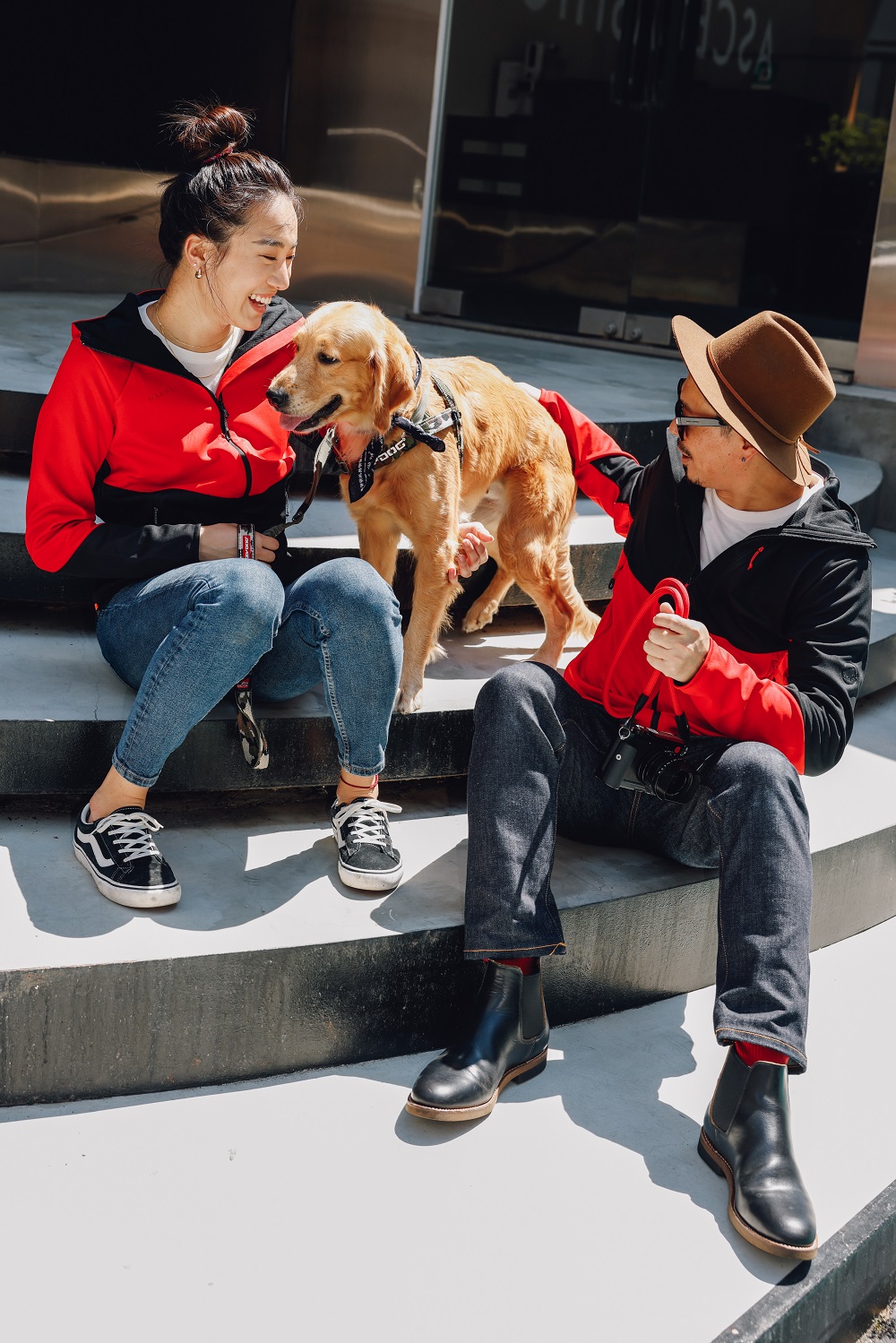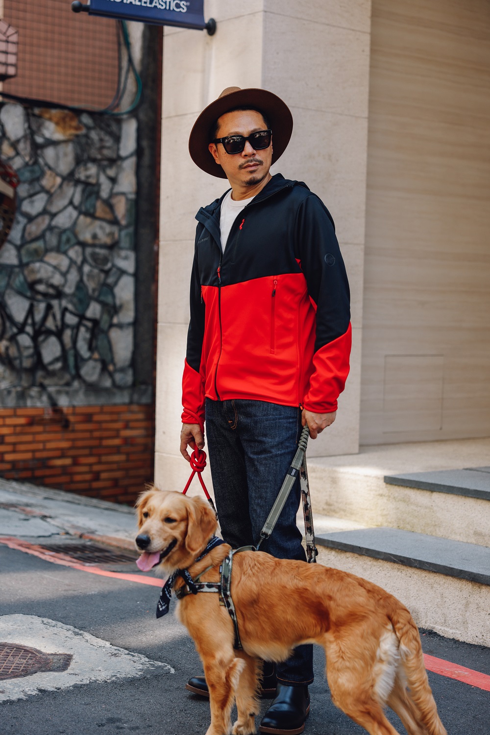 「我在戶外有戶外的樣子,在城市也有很Urban的打扮,我覺得穿在身上的東西,有時候其實也象徵著你這個人的專業。」回到都市後也增添一點時尚風格,服裝上的專業度更是不容妥協,打理自己的同時,Yorko則對Ming喊著「YANA的領巾呢,你記得幫他戴一下!」,可見兩人對於打扮的重視,就連寵物也不馬虎。