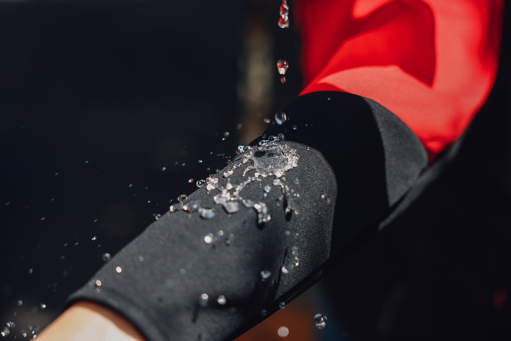 ▲採用GORE®INFINIUMTM材質,抗風防潑水,表布以PFC-free DWR防潑水處理,常跑外景的Ming,工作若遇到下雨也沒有撐傘習慣,能有防潑水設計的機能外套相當重要。