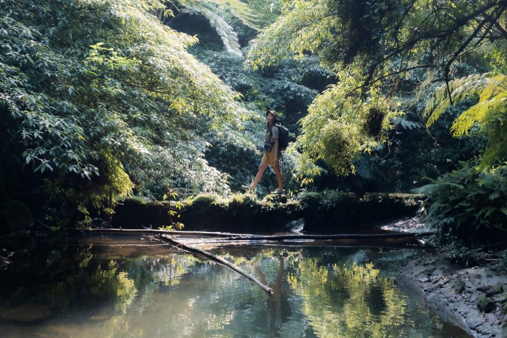 另外我們拍攝途中,也在途中發現一個可以往下走的小徑,這裡有一塊淺灘,我們當天也在這裡開啟了野營模式自行料理午餐,能欣賞到瀑布,一旁還有潺潺溪水聲,可以在這裡度過整個下午沒有問題!但記得無痕山林原則,完食的垃圾以及廚餘一定要自行帶走,千萬別遺留在山林中,也不要將湯湯水水的食物倒入溪水中喔!