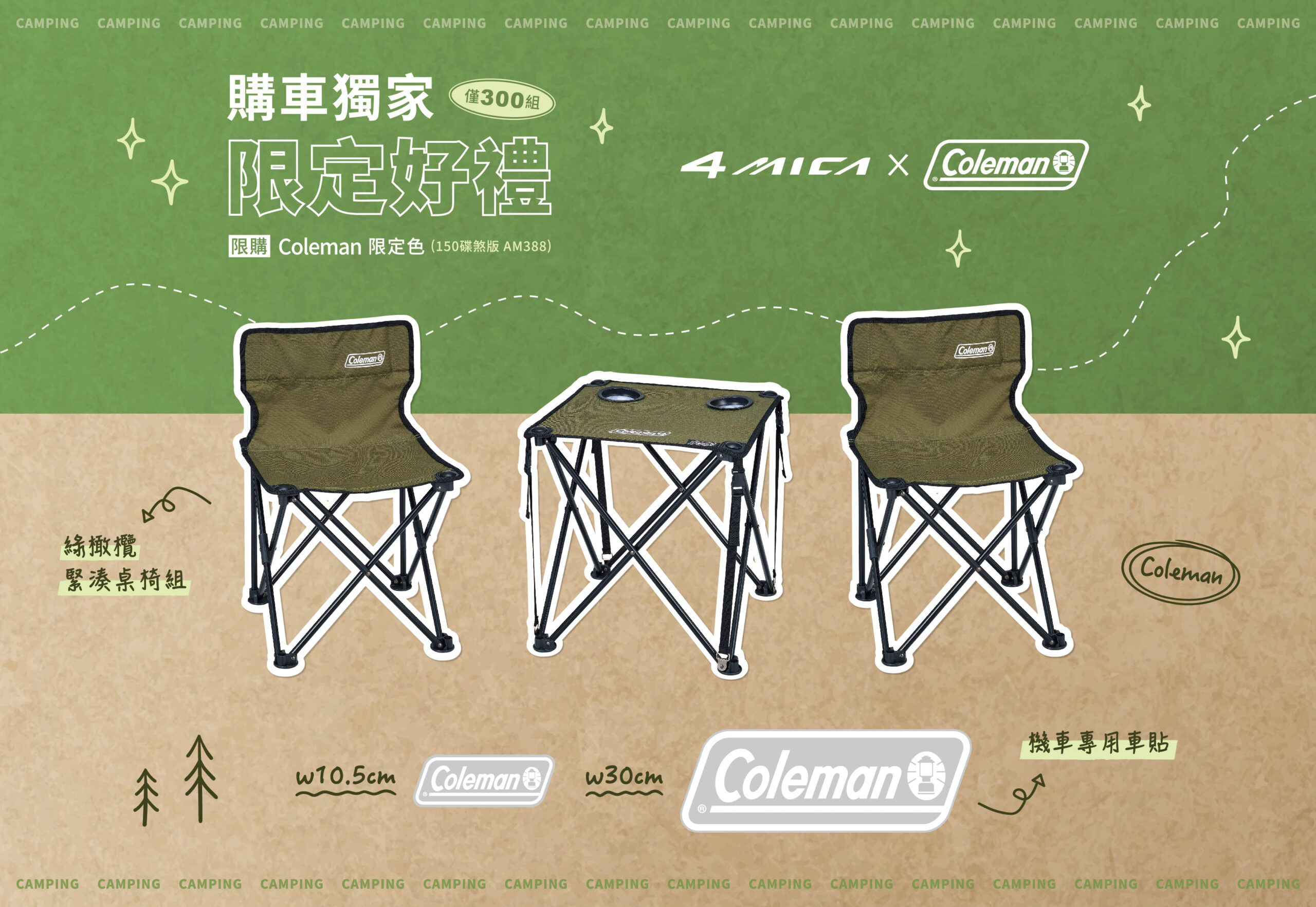 全台限量 300 台,購車即贈 Coleman 緊湊桌椅組與 Coleaman LOGO 車貼
