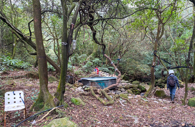 另外一次是在下七股野溪溫泉,發現有民眾竟然自己引水,堆疊石牆,建起自己的溫泉池。更扯的是,甚至在現場發現大型浴缸,建造專屬的露天溫泉池,這些都是違法的事實,也是我們不樂見的。我們鼓勵民眾親近山林,但親近山林的同時,也希望在不改變山林原本樣貌的前提下,愛護山林,尊重山林!