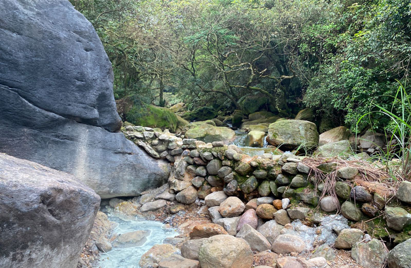 ▲查獲民眾自行堆疊石牆,建起自家的溫泉池。
