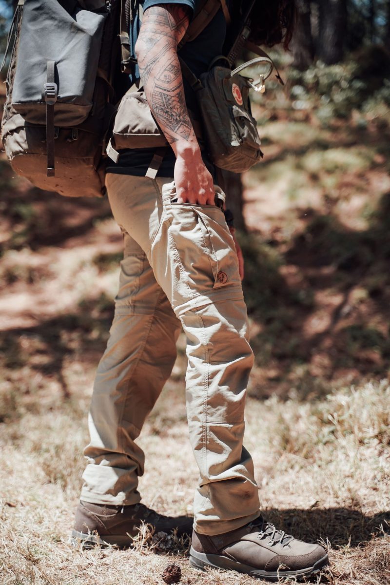▲採用屢獲殊榮的Abisko Midsummer Trousers 版型加上拉鏈的設計,搖身變成兩截式的褲款,穿脫便利,一褲多穿,適應台灣登山路線多變地形;上身羊毛短袖為可溯源的美麗諾羊毛與再生聚酯纖維混紡製成。