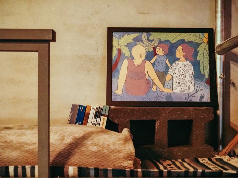 香菜:我來到恆春有先去某間民宿當管家,當時老闆說我沒事可以創作,可是當我真的開始畫畫時,老闆反而覺得我太閒。幸好在 Amouter 恆春我可以做我想做的事情,老周也很鼓勵我們做自己想做的事,當然前提是工作都有做好啦!