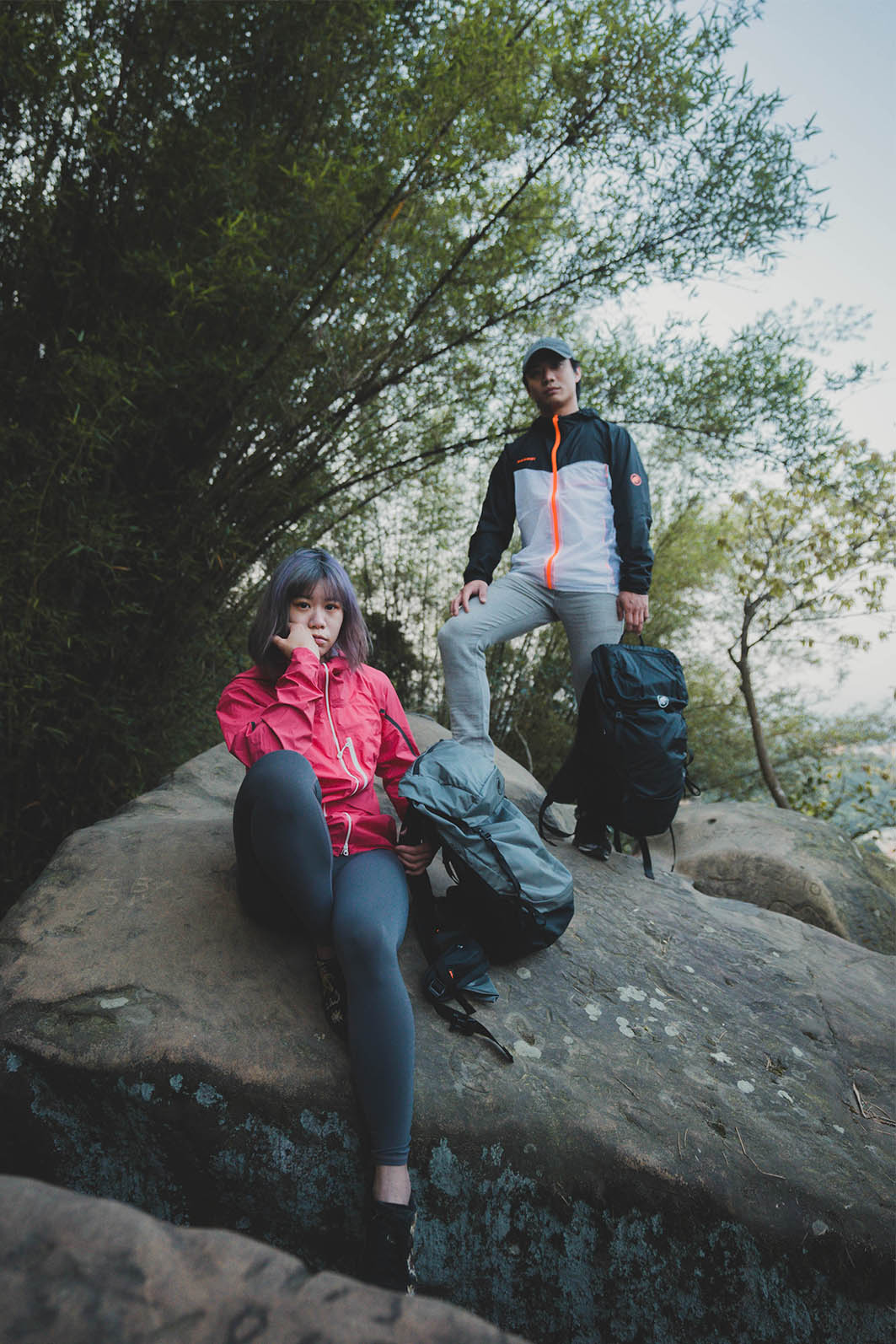 「這次天剛亮就出發,從平地到山上、從凌晨到中午,MAMMUT非常適合春夏季節,早上有點涼意,行進間可以些微擋風;但中午出太陽,在跑動過程卻不感覺悶熱,比起過去穿著其他傳統外套,我可能跑完後會超級悶熱,但這次卻不會,真的非常透氣。」陣中少數女性 喵 這次穿著Nordwand Light,下半身搭配一件Leggings,良好的剪裁很適合這樣在戶外的隨興搭配,行進之間也能提供很好的擋風與透氣效果。
