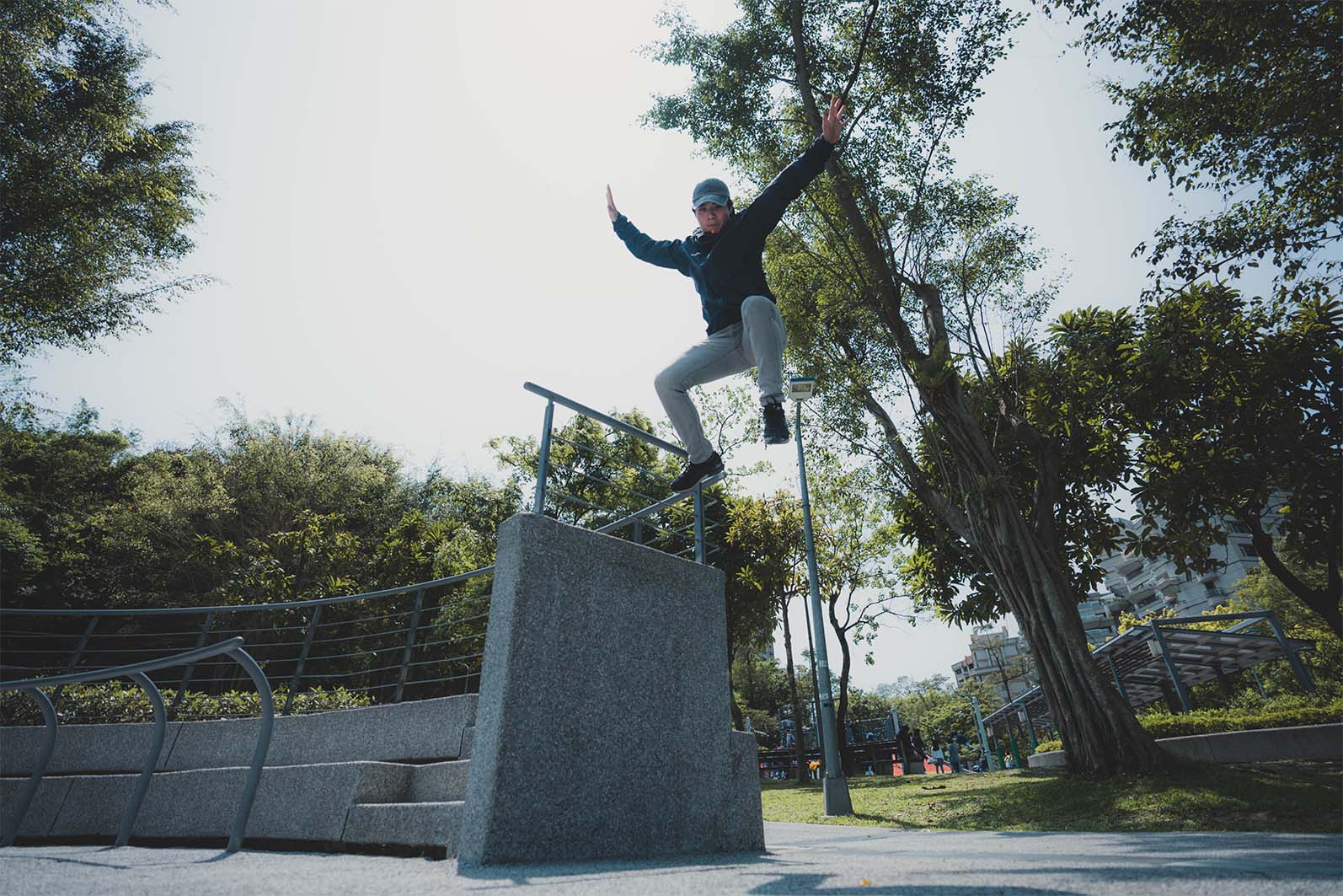 即使同一個地方,也會因為展現出不同動作而拼湊出千變萬化種套路,這種不受限制的模式帶來前所未有的自由感,也是令Fun Action的大家所著迷的地方,其實他們從不追求一定要跳多高與多遠,而是著重在其中自由玩味的樂趣。