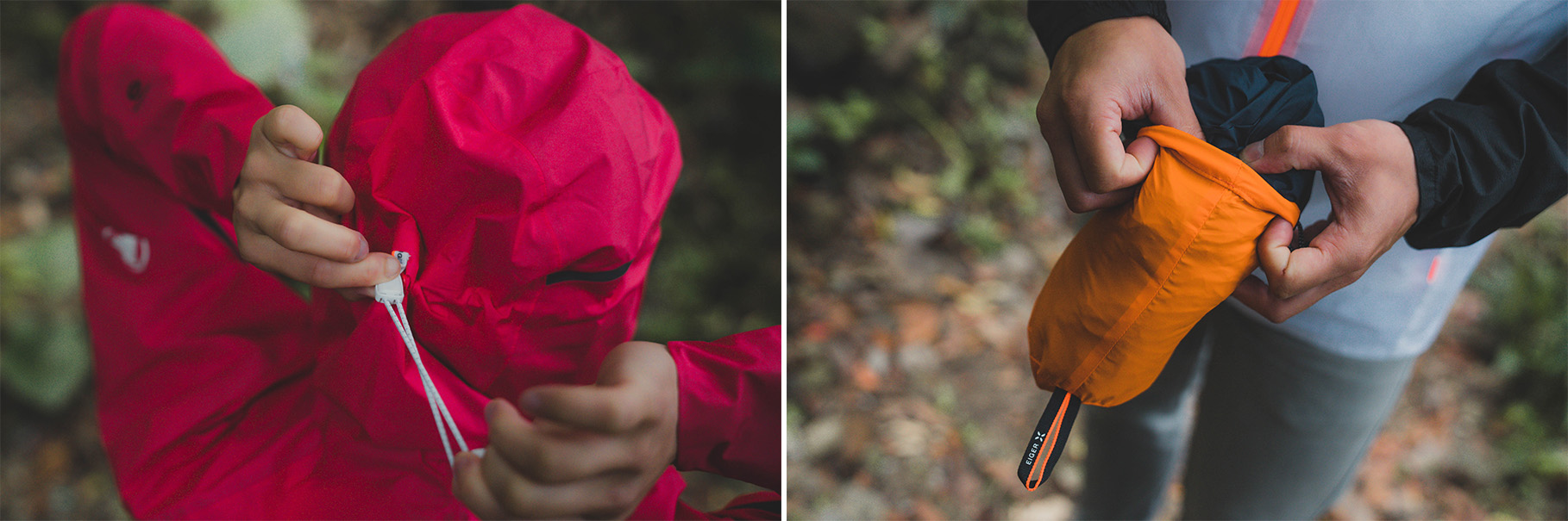 背部的極限艾格標誌,訴說著登峰造極的純正血統;胸前口袋,便於放置手機、地圖等小物;連帽後方的拉繩,輕鬆調節鬆緊,不會因帽沿阻擋視野;整件外套可收納進袋,僅226g 的重量不帶有任何負擔。