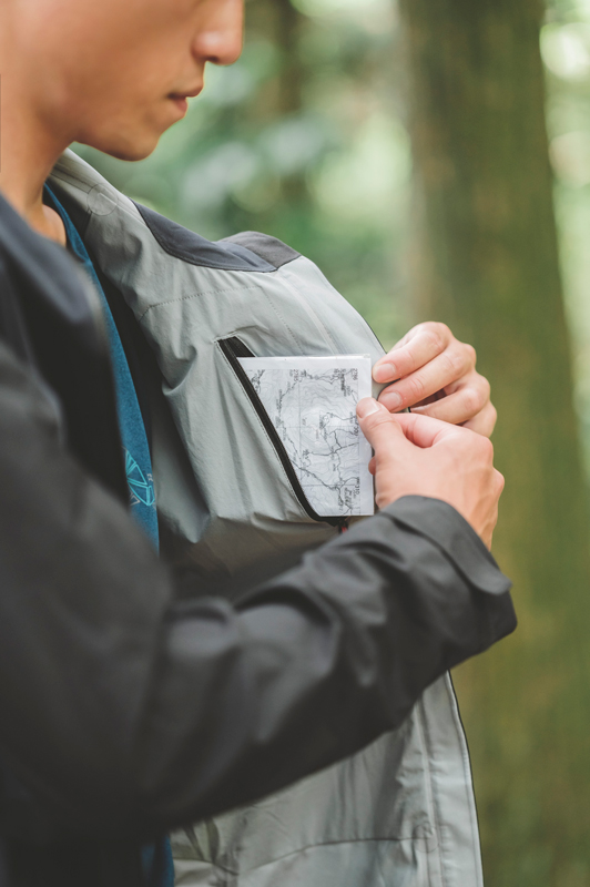 他接著說:「所以我覺得外型很重要,如果能買一件不僅登山可以穿,日常出遊也可以穿的單品就很實用,我身上的排汗衣很透氣,我覺得夏天穿出去逛街也很適合;外套版型合身,而且它內裡還有暗袋,我已經想好以後出國可以穿它,把護照、信用卡藏在暗袋裡比較安全。」