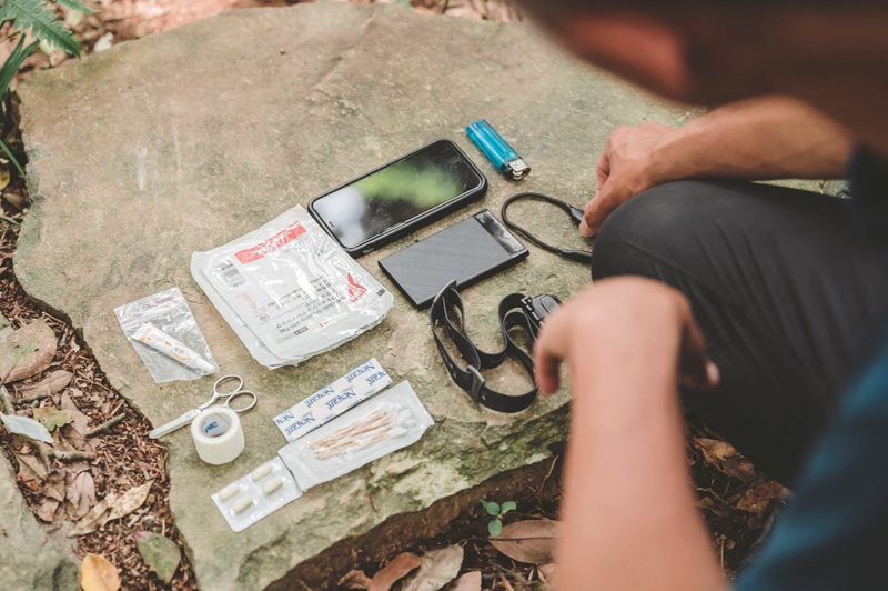 ▲無論是郊山還是中級山、長天數縱走,意外隨時都可能發生,緊急包紮用品、藥品,還有頭燈、行動電源、手機都應該要隨身攜帶。
