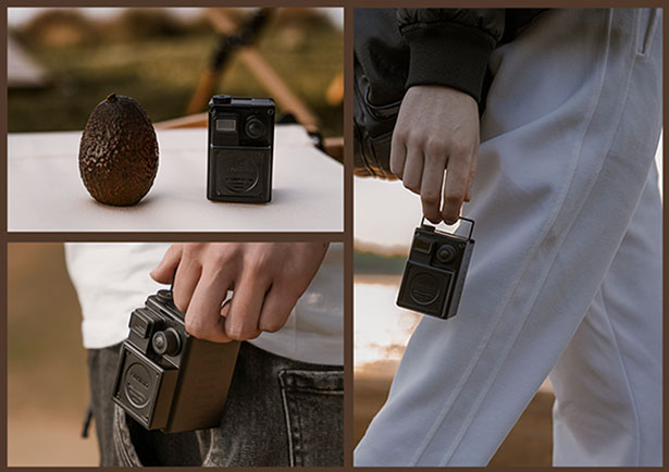 這台 FILMATIC 投影機尺寸約為 5.8×5.1×7.6cm,幾乎是只有巴掌大,重量也只有 200g,全機 IPX6 防水,採鋁合金機身製造,且經過特殊結構設計可以耐摔。有別於傳統投影機會內建風扇散熱,FILMATIC 在機身兩側搭載了可以快速散熱的材質,可以避免風扇噪音干擾視聽感受。
