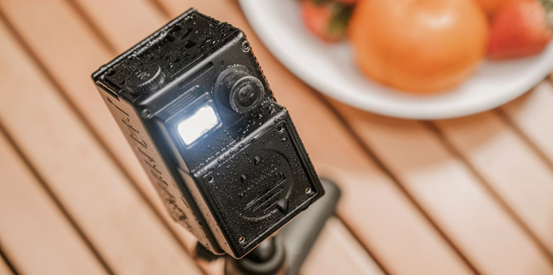 前面有提到,除了作為投影機使用,FILMATIC 也可當作藍牙喇叭、營燈,你可透過藍牙連線到投影機,播放你喜歡的音樂(只是官方並沒有特別強調音質如何)。機身底部搭載了 100-300 流明的 LED 燈,可掛在營地、帳篷內當作營燈使用。