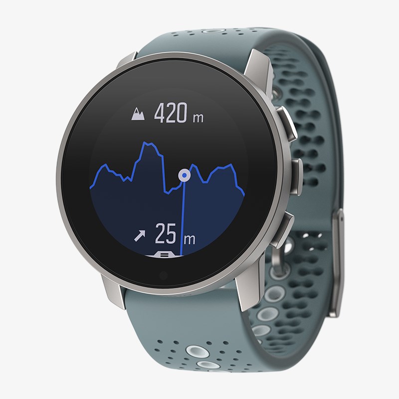 SUUNTO 9 Peak 比起上一代 SUUNTO 9 瘦身 37%、輕了 36%,機身大小為 43 x 43 x 10.6 mm,錶面大小 43mm,重量 52g,提供鈦合金、不鏽鋼雙版本(不鏽鋼版本重量 62g),錶面為藍寶石水晶材質,兩種版本皆支援 100m 防水。