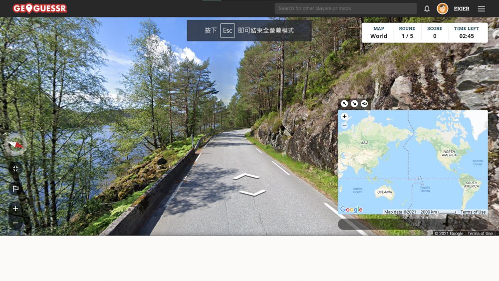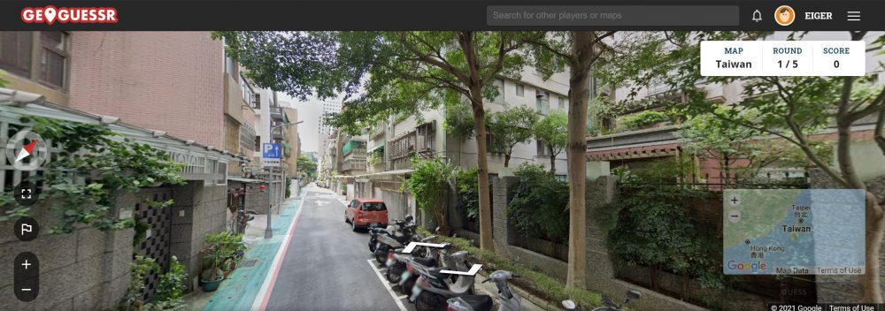 GeoGuessr 是一款以 Google Maps 的街景圖為基底,當你選定國家或是地區,畫面會出現一張街景圖,你可以像瀏覽 Google 街景圖那樣 360 度前後左右移動,藉由周遭景物推測該地點在哪裡。