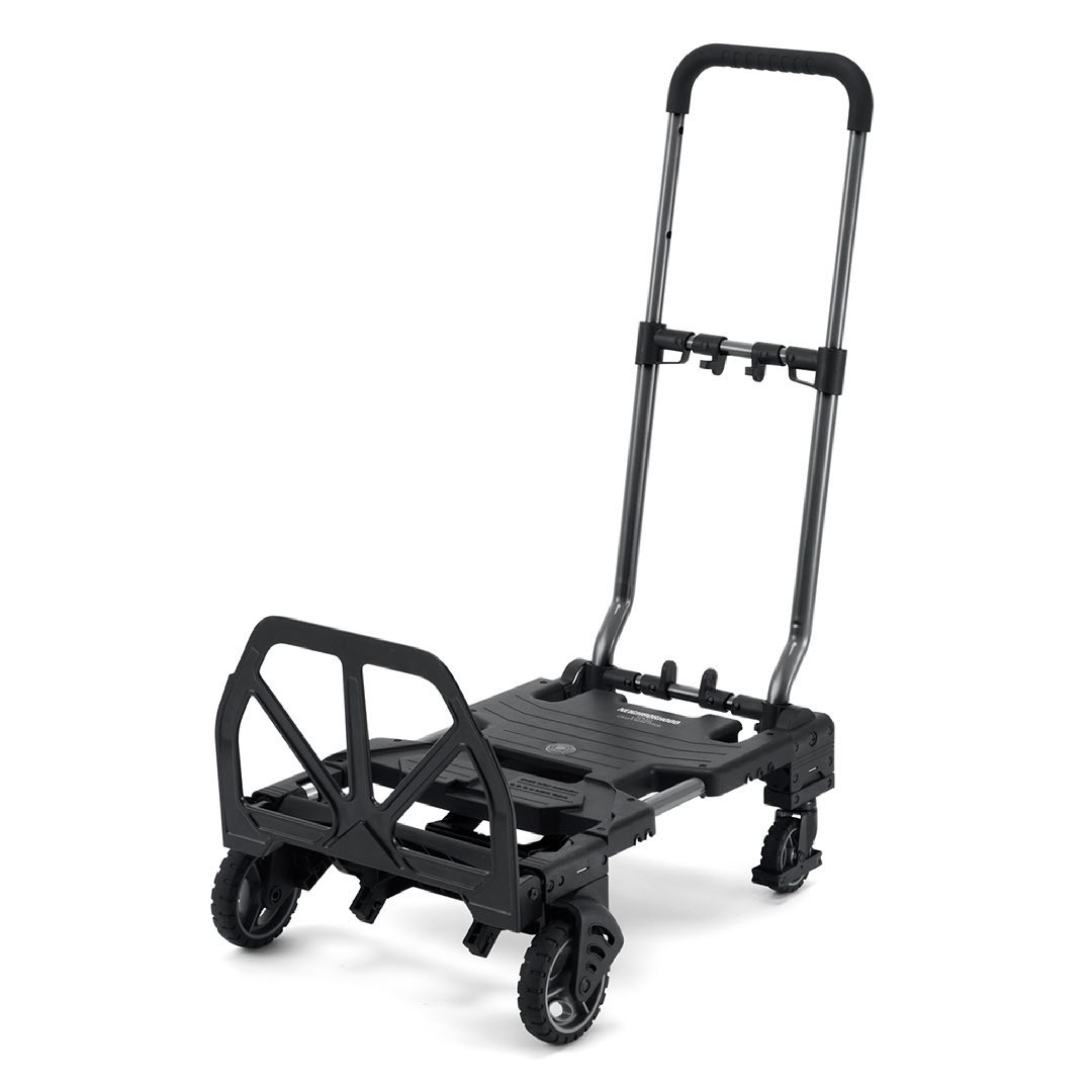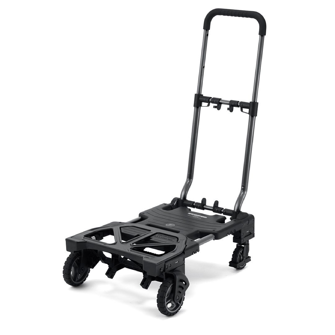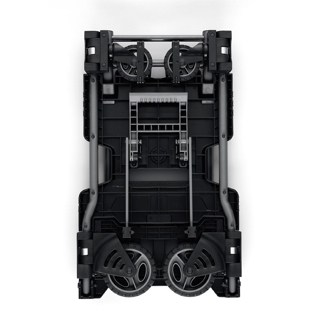 首次聯名推出的平板手推車,除了可摺疊收納之外,另一設計亮點即是有四輪及二輪兩種使用方式,相較於去年推出的推車,在操作上及裝載功能也多了不同選擇。當裝載物品較重時,可展開為四輪,前方還有隔板可以立起,以防止在斜坡處造成物品滑落;若是在一些比較狹窄的山坡地、停車場等等,可將小的輪子收起,換為大前輪,即便在崎嶇的坡地也能輕鬆搬運。