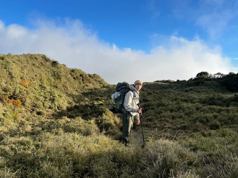 上嘉明湖前,他也挑了兩個周末,與友人挑戰哈加縱走、高島縱走兩條知名中級山路線。回想起爬加里山那天,他笑說好累,一開始衝太快,結果後面沒力,喘得要命,「所以真的不是有在健身就會爬山,爬山還是需要很多技巧的。」有了那次經驗,他才知道原來爬山講求的不是快,而是慢。將這樣的觀念套用到嘉明湖行程,他覺得輕鬆許多。