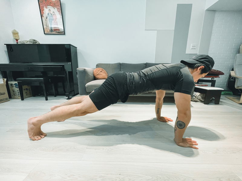 在家中訓練誘惑很多,教練 Bryan 說他自己也很容易被沙發或是床吸引而做不下去。他建議不妨以視訊方式找朋友一起做,或是跟同住的另一半、家人、室友一起做,都是很好的激勵自我方式,「不過要注意不要找喜歡偷懶的人就是了。」