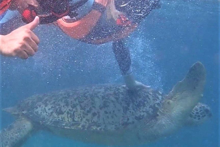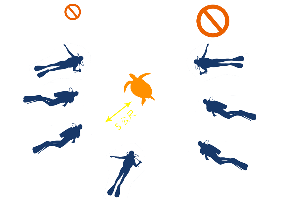 - 與海龜保持五公尺以上的距離,減少海龜的壓迫感。