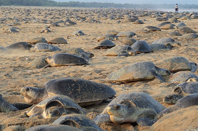▲此為2020年在印度魯西庫利亞海灘(Rushikulya),估計有29萬隻欖蠵龜集體上岸產卵,推測有可能是疫情緣故,海灘無人干擾,海龜安心上岸產卵。(圖片來源 / IG @bipro_seas)