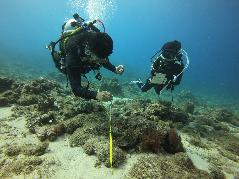▲執行珊瑚礁檢測 (台灣環境資訊協會提供 / 蘇淮 攝)