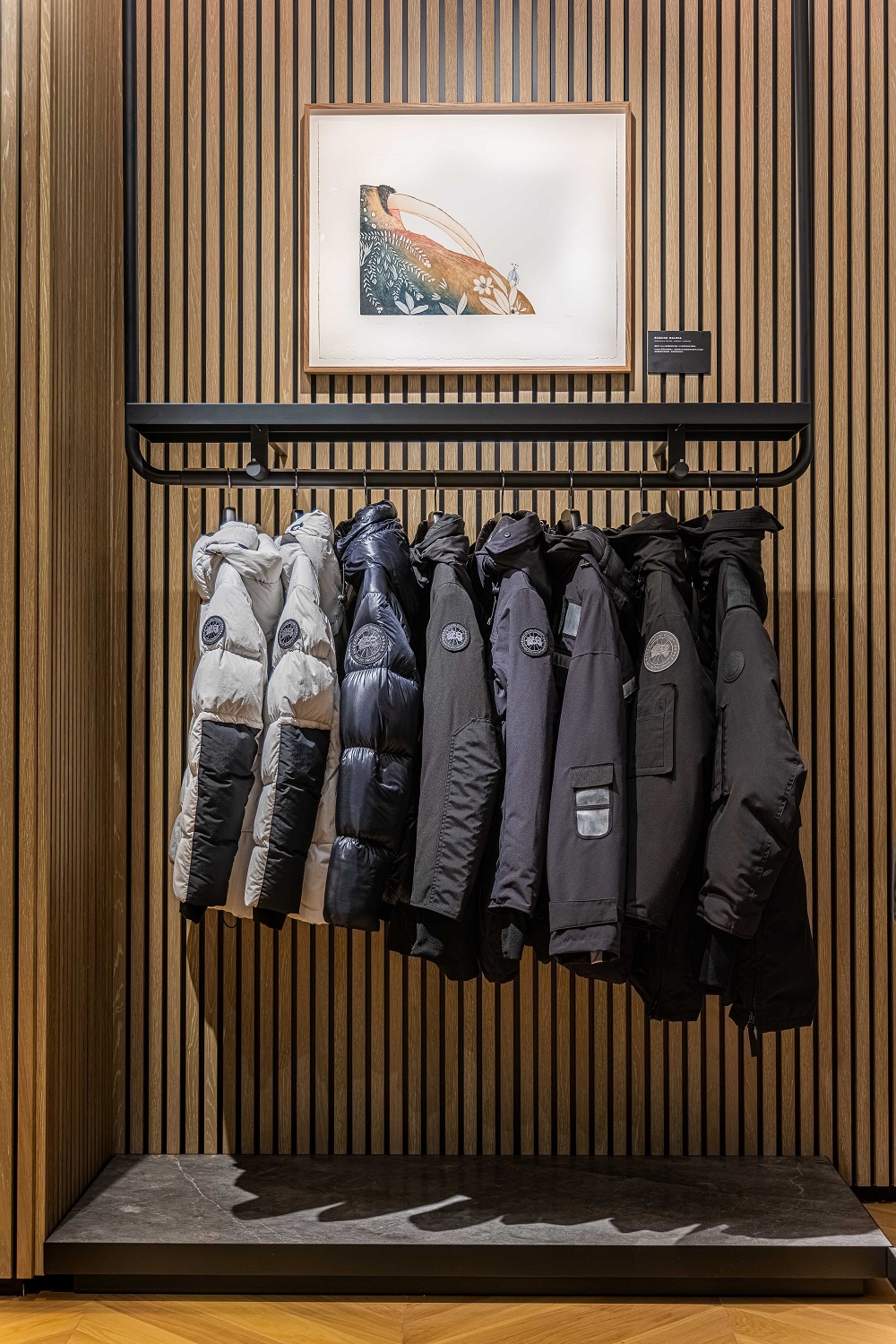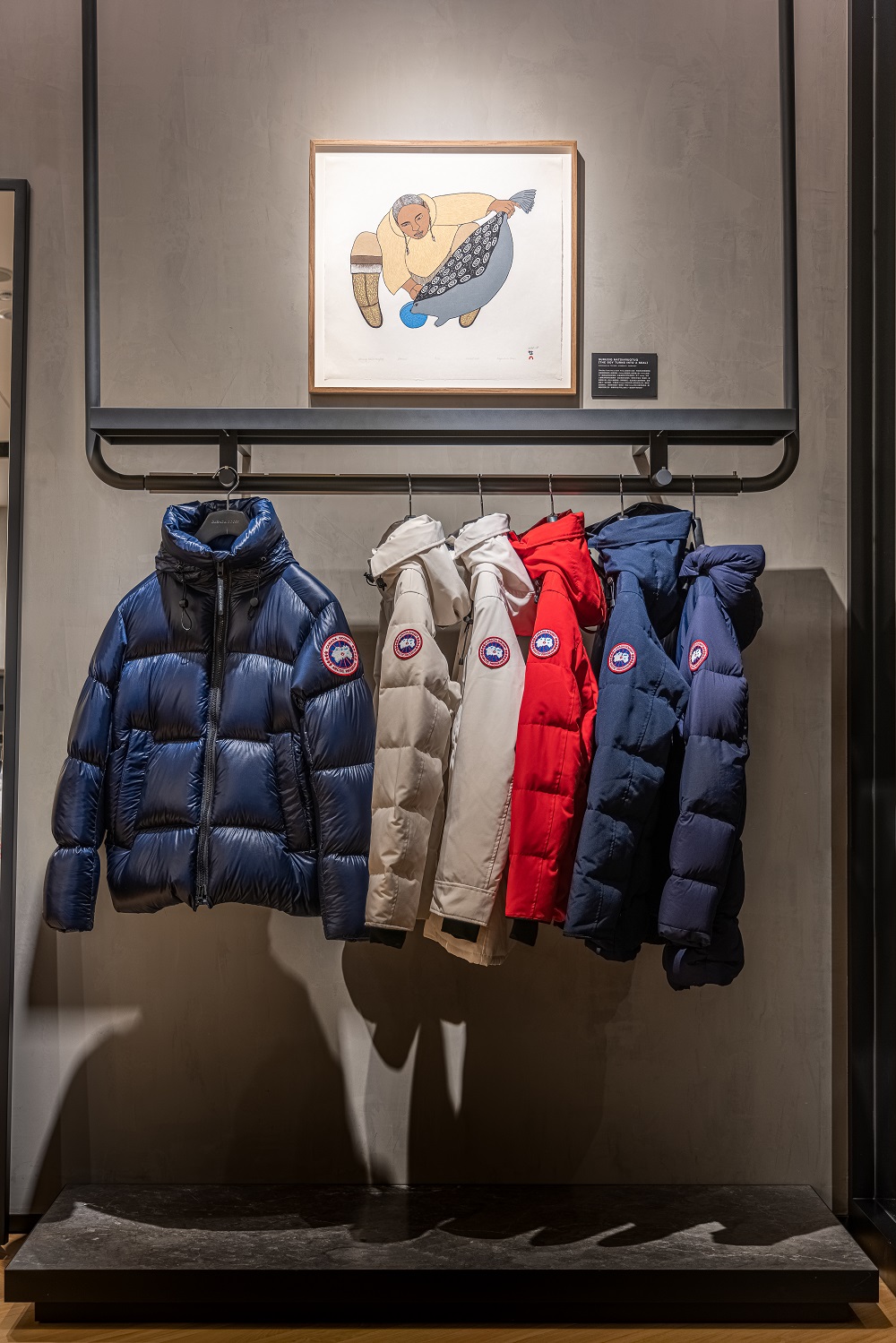 此外,透過旗艦店內因紐特藝術家 Ning Teevee,各種取自於大自然中花朵,樹葉所創作的藝術品,也在在凸顯Canada Goose重視人與自然平衡的核心文化。