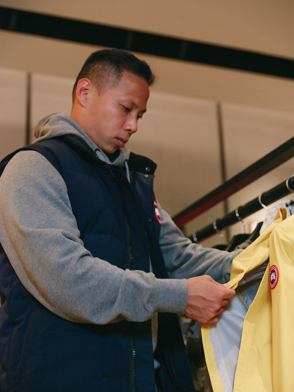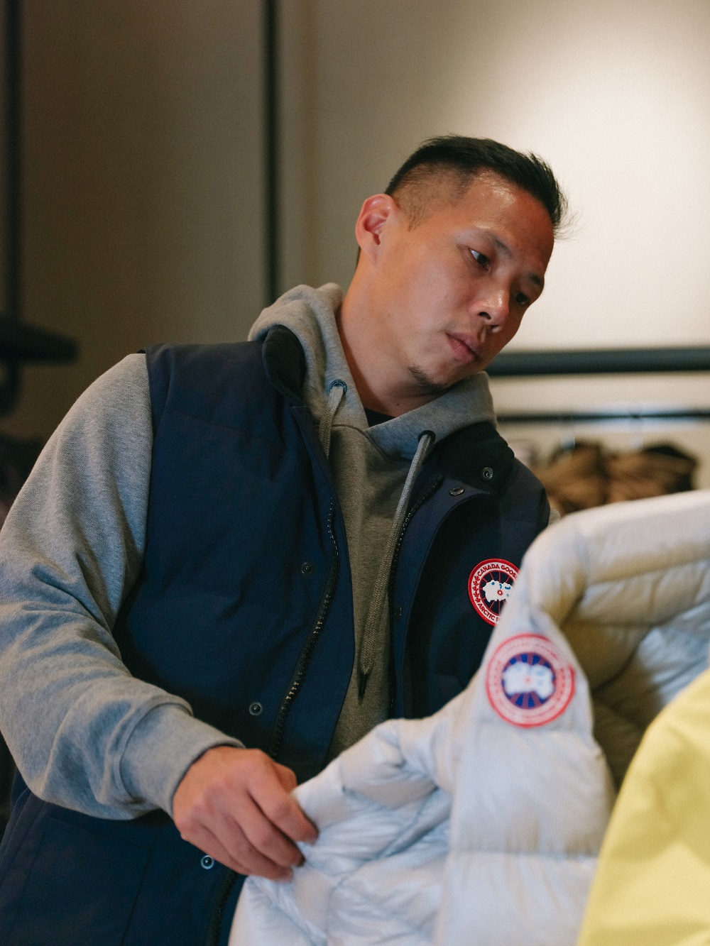 Canada Goose除了最經典的禦寒派克大衣,還有很多能夠貼近台灣生活日常的風雨衣或輕羽絨系列,無論一年四季任何日子裡,都能提供高性能的服飾。「我大學在淡水念書,冬天又下雨的時候騎車真的跟極地差不多等級。」即便已歷經極地百戰的超俊,對台北的濕冷仍是心生敬畏,特別是對常接觸戶外的人來說,一件能有效擋風遮雨的服裝不僅能保護自己,Canada Goose的時尚外型也能兼顧日常風格展現,其細緻的手工更反映出高級品牌對推崇生活品味的一絲不苟。