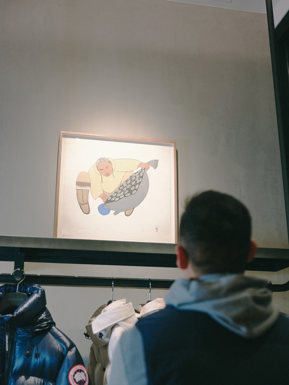 ▲在冷冽的環境裡,用藝術注入一股暖流,店內有許多因紐特人的藝術作品展示。Canada Goose全球將近300件的作品,有98%為加拿大人所創作,其中更包含因紐特藝術家,也希望透過藝術的傳承,延續因紐特人的文化。