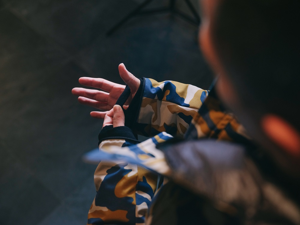 ▲派克大衣袖口處有手套設計,將皮膚暴露於寒冷環境的機會降到最低,用手機或是拿取物品更為方便。