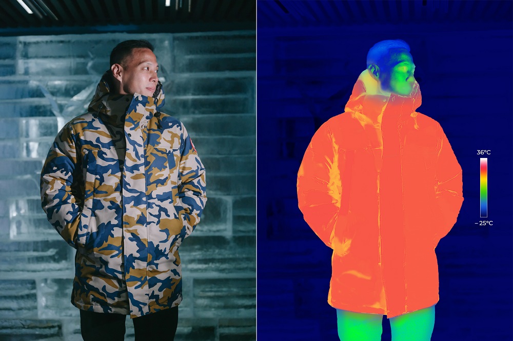 而這次體驗到全台第一間Canada Goose旗艦店中的Cold Room低溫室,盛夏的台北街頭,一開門立刻踏進零下25度的極地環境,透過全台無一無二的”試衣間”,一踏入Cold Room彷彿身臨其境,檢視所選擇的服裝是否適合低溫環境,「哇!我以後可以借這裡訓練嗎,還不會有難聞的魚腥味耶!」超俊打趣地說著。