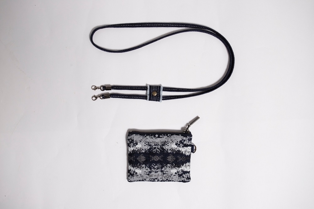 ▲多功能海洋印花 口罩鍊/眼鏡鍊/頸掛包 / 以海浪圖樣作為主角,不浪費每一塊布料,因應現代人的需求,可以收納各種小物、配件,除了可以單獨當零錢包使用,另外鍊子部份可以當作眼鏡鍊與防疫用的口罩掛繩。將商品效用極大化,也希望間接透過多功能設計,減少消費、減少浪費。