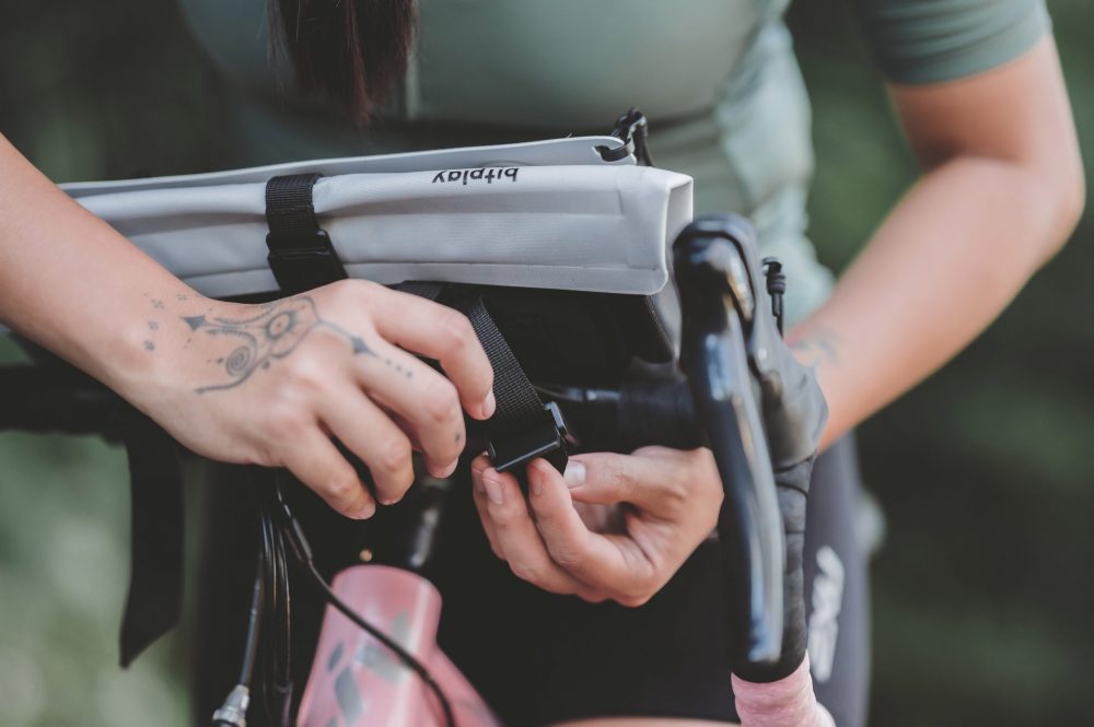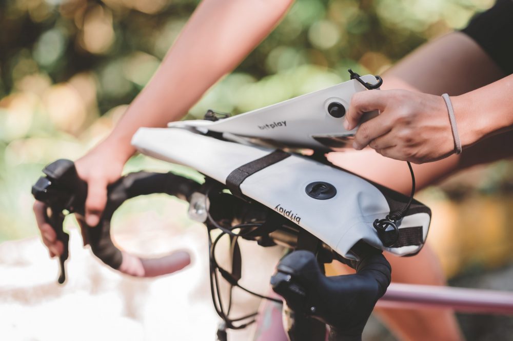 ▲bitplay AquaSeal Active 採用國際大廠材料製成,主袋後面有多個掛點,可以將所附的背帶穿過掛點,固定於單車龍頭上。搭配防水觸控前袋(IPX7),可以觀看手機導航、觸控操作。