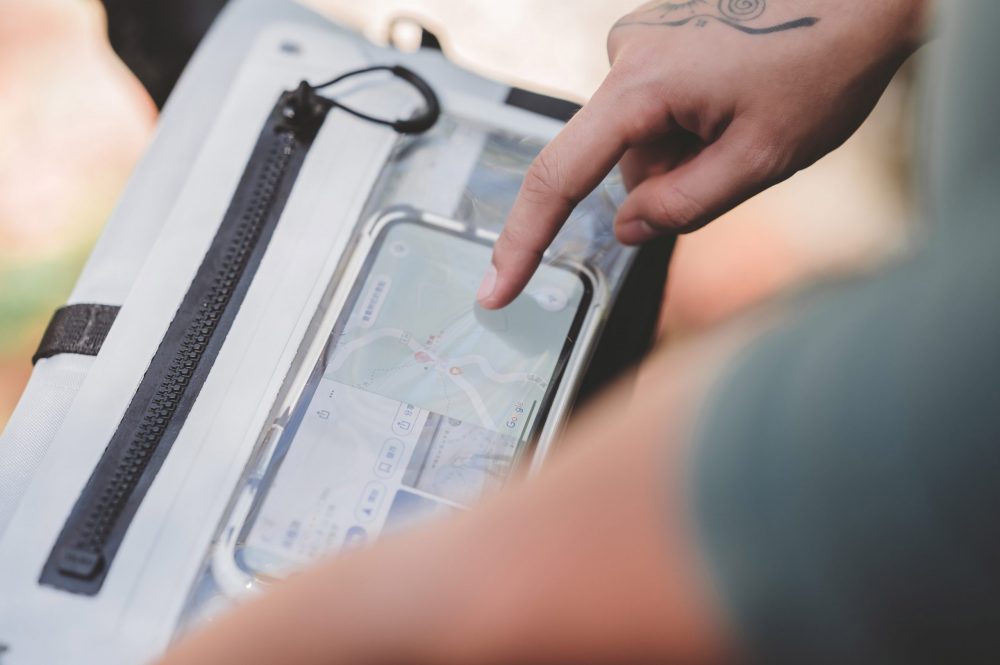 ▲龍頭包,方便隨時查看手機導航、訊息通知,而且全防水包包保護著,不用擔心手機淋雨壞掉。