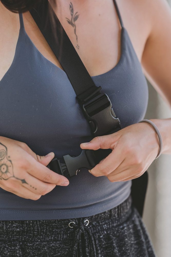 ▲腰包揹法,包包下方搭配掛條還可固定水壺。