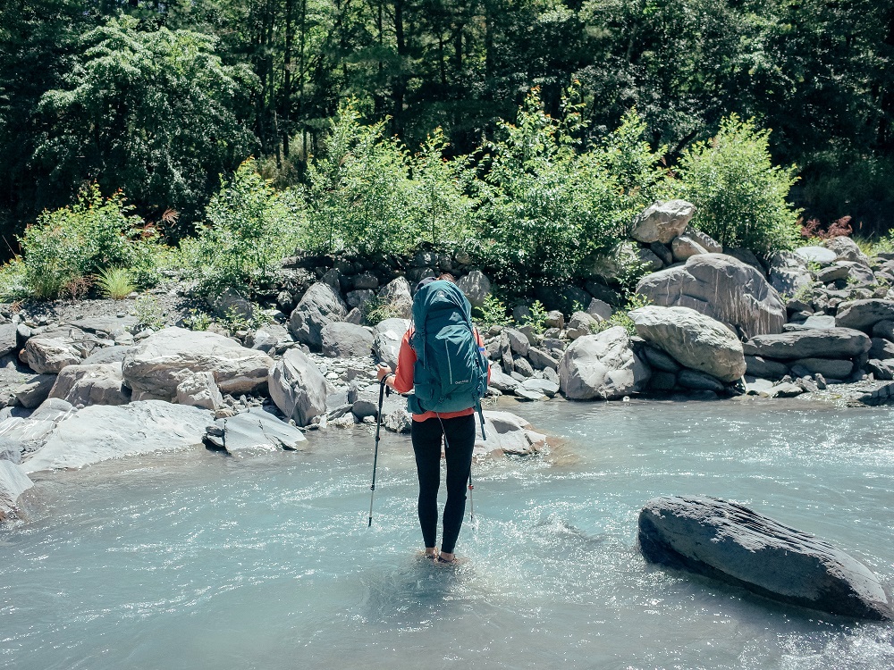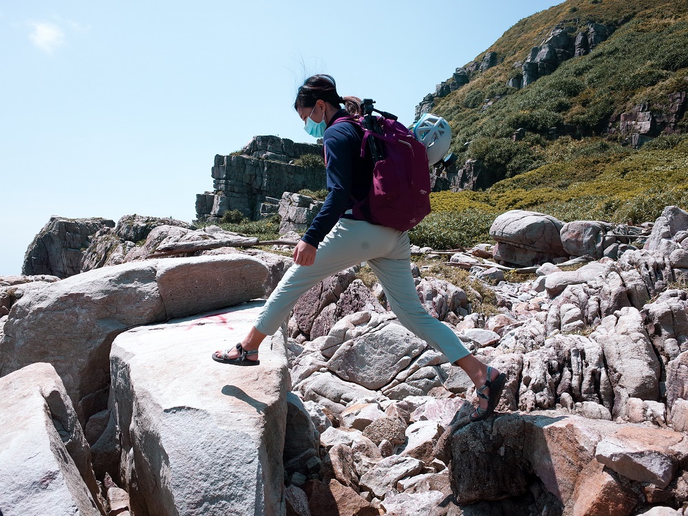 大石頭之間距離較長的部分要小小跳躍,這時候有了腰帶的加持更凸顯背包的穩定性真的很好,就算我外掛很多物品,也不會讓我感受到負擔。