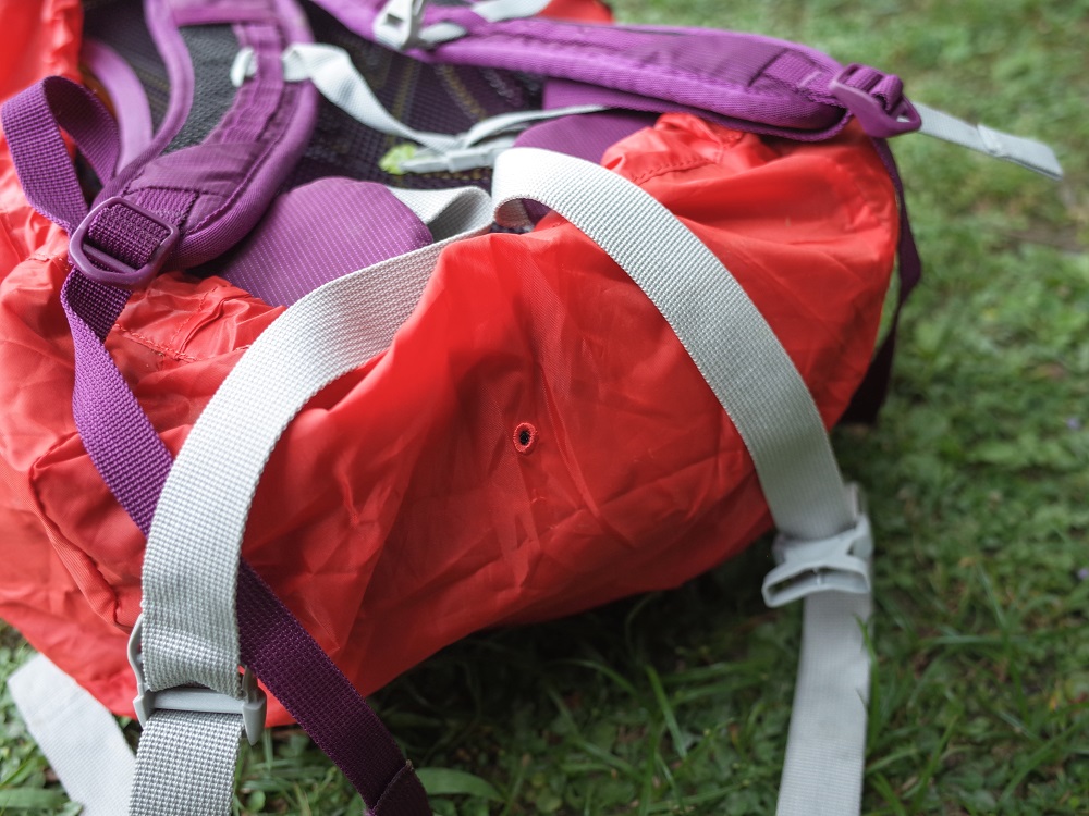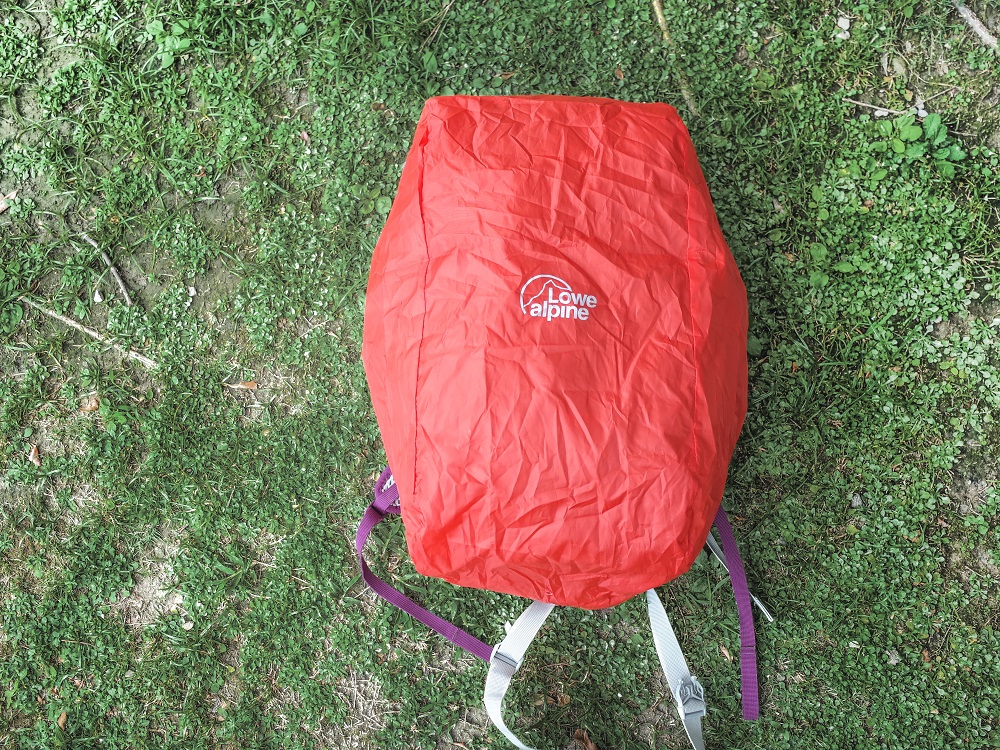 Lowe Alpine AirZone Active 18有內建雨套,這在小背包裡算是比較少見的設計,18L的尺寸的背包套在市面上比較不好買,不然就是要買大一點的將就,好險這款包包很貼心的附了量身打造的背包套。