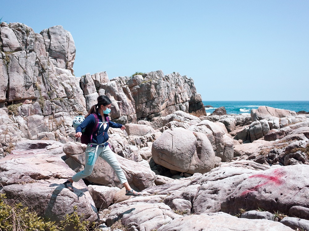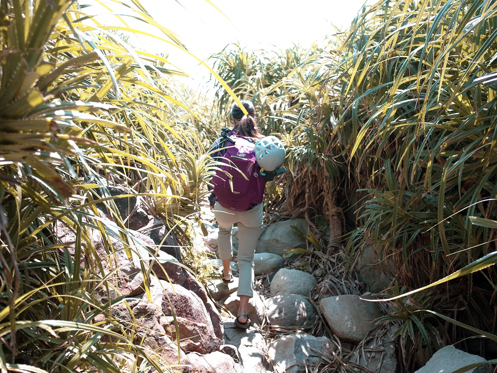 從和美國小進去沒多久會進入林投區,這一區的石頭比較小,有時候會比較鬆,要好好看穩的石頭踩喔!