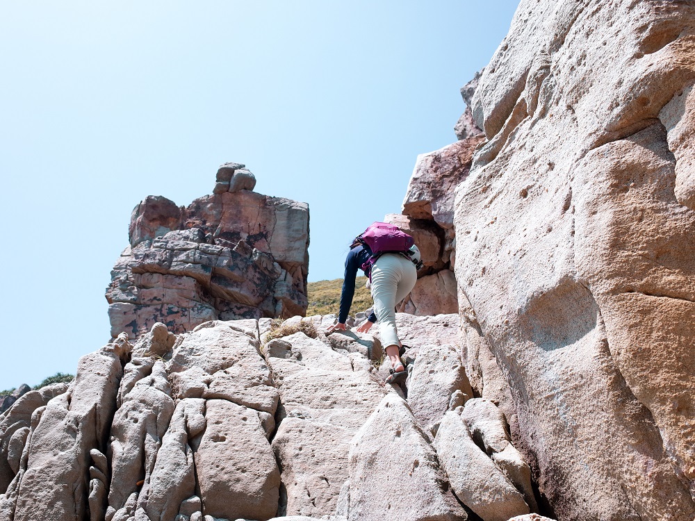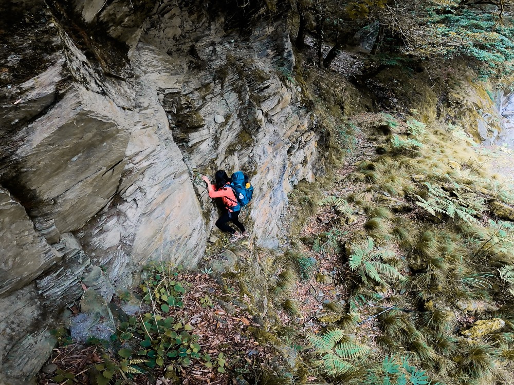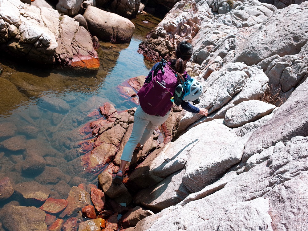 路況:在前往岩場的路上需要背著背包小小攀爬石頭,部分落差需要小小跳躍,有些橫渡區需要身體緊貼牆面將重心靠牆。