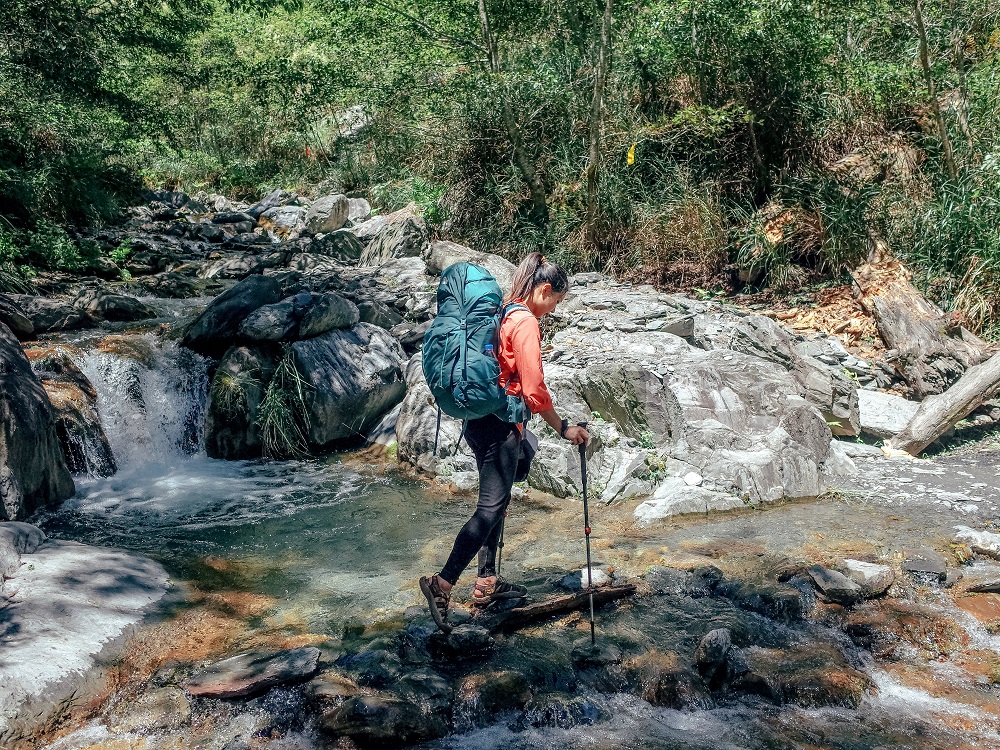 到溪底有段落差,小小攀岩一下。走這種地形又背比較重的時候,最怕重心不穩向後倒,但這顆包包給我穩定的安全感。