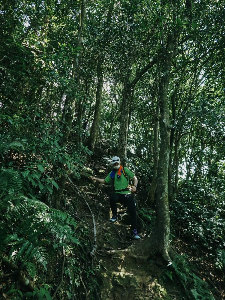 走在被大量蕨類包圍的二格山徑上,Go Formosa 創辦人兼當日攝影師大誠說到,上二格山有很多路線,但他們特別挑了一條有點進階卻又不會太難的原始山徑,重點是,這條路線非常美,可以看到大自然最真實的模樣。從一開始辛苦的陡升,到走在山稜線上,有大樹的遮蔽,陽光僅能鑽過縫隙透到地面,加上偶有涼風吹拂,走起來非常舒服。每每有風吹來,還可聽到遠處傳來「好舒服呀!」發自內心的吶喊。