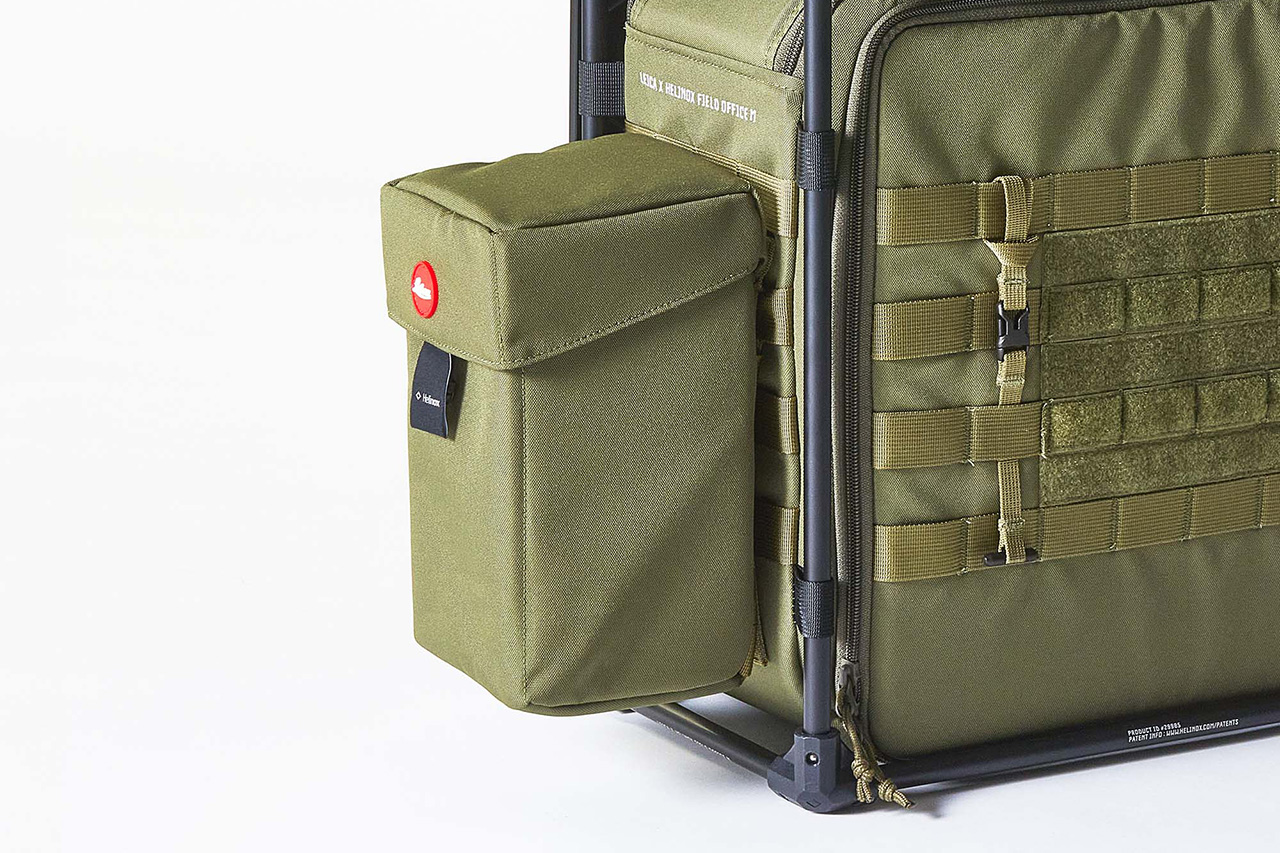 先講兩個版本的共通點,兩個版本都會附上 Helinox x Leica 聯名相機包,軍綠色設計,包包上有兩個品牌的 logo,並採用 Fidlock 磁吸快扣設計,提供安全又快速抽取相機。包包背後有 Molle 外掛系統,可以更方便外掛到你的背包或是其他物件上。另外,兩個版本也都會附上一把 Helinox 戰術椅,採用 DAC 輕量鋁合金腳架,僅重 1.12 公斤,可承重 145 公斤。從外觀來看,這把戰術椅同樣放上 Leica 標誌,且椅背增加了 Molle 外掛系統,且有魔鬼氈,提供更多擴充性。
