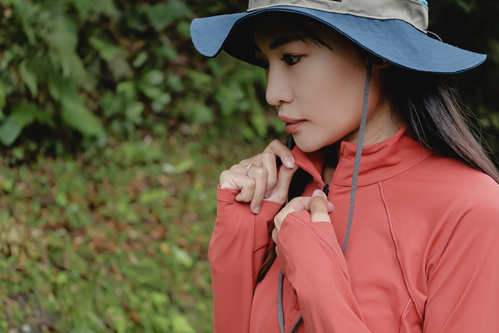 有些人擔心穿長袖運動會熱,其實直曬跟濕悶不透氣往往是造成不舒適的主因,好的排汗衣除了吸走汗水更能排出熱氣,讓身體時時刻刻保持舒爽;而長袖阻絕了紫外線的曝曬,當有林蔭時又可以拉起袖管調節體溫,是很棒的選擇。