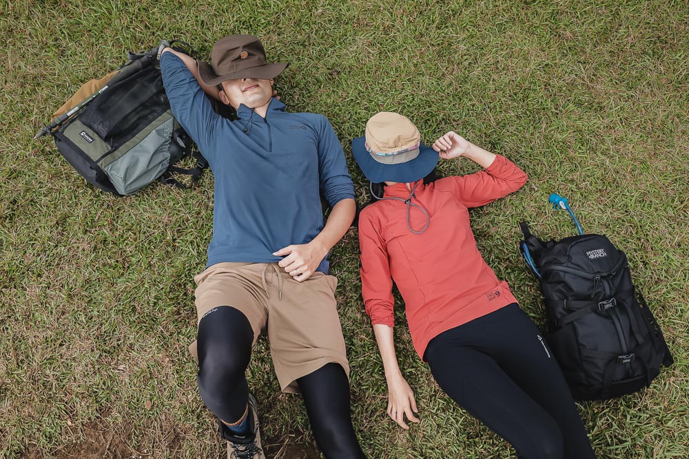 無論長短程,為了安全起見我都習慣帶著中層保暖及外層風雨衣,尤其長程住宿更要一應俱全。而山上過夜我通常不換內層,但在包包一定會備著一套衣物,避免淋雨失溫的突發狀況。因此內層排汗衣除了基本的吸濕排汗外,防止流汗異味也很重要。連穿兩天 Mountain Stretch 排汗衣後,我和大恩身上完全沒有留下任何汗味,清爽的味道對於自己跟夥伴都是舒服的關鍵。
