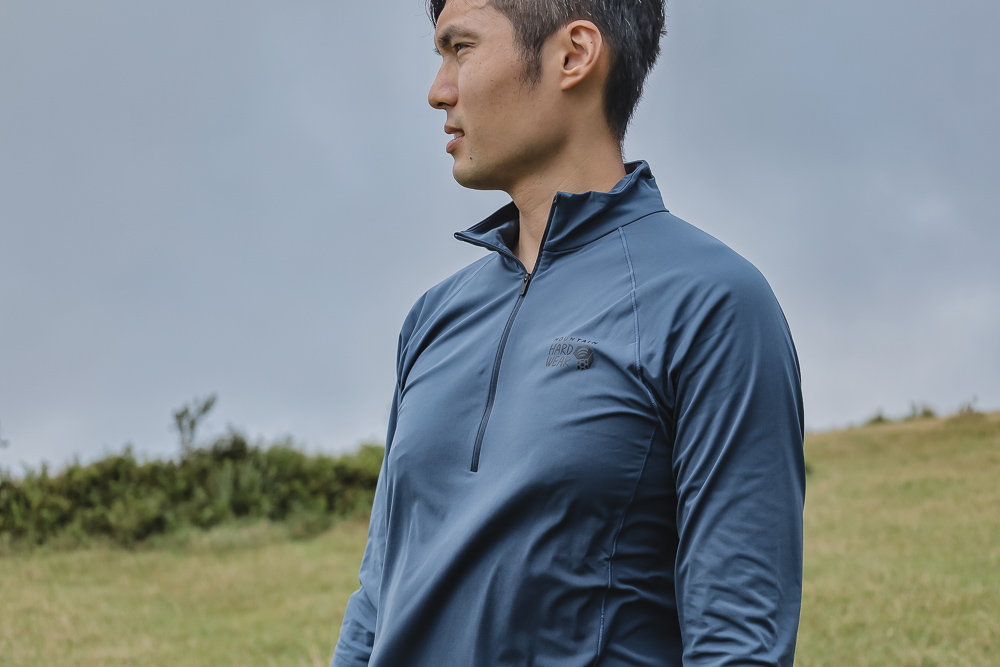 自從穿過 Mountain Hardwear 的 Stretch Ozonic 風雨衣後,我就被深深圈粉,絕佳的機能性與剪裁設計,已經成為上山的必要裝備之一。這次收到Mountain Hardwear邀請,和大恩一同測試秋冬新款 Mountain Stretch 系列的彈性快乾立領半拉鍊長袖排汗衣 (接下來簡稱 Mountain Stretch 排汗衣),這款排汗衣很適合作為登山健行的底層衣穿著,再搭配保暖及防風雨的外層就能輕鬆應付冬季的氣候變化。這次測試我們穿上優雅的馬蹄蓮紅搭配鋅色,正好完美演繹秋冬氛圍。